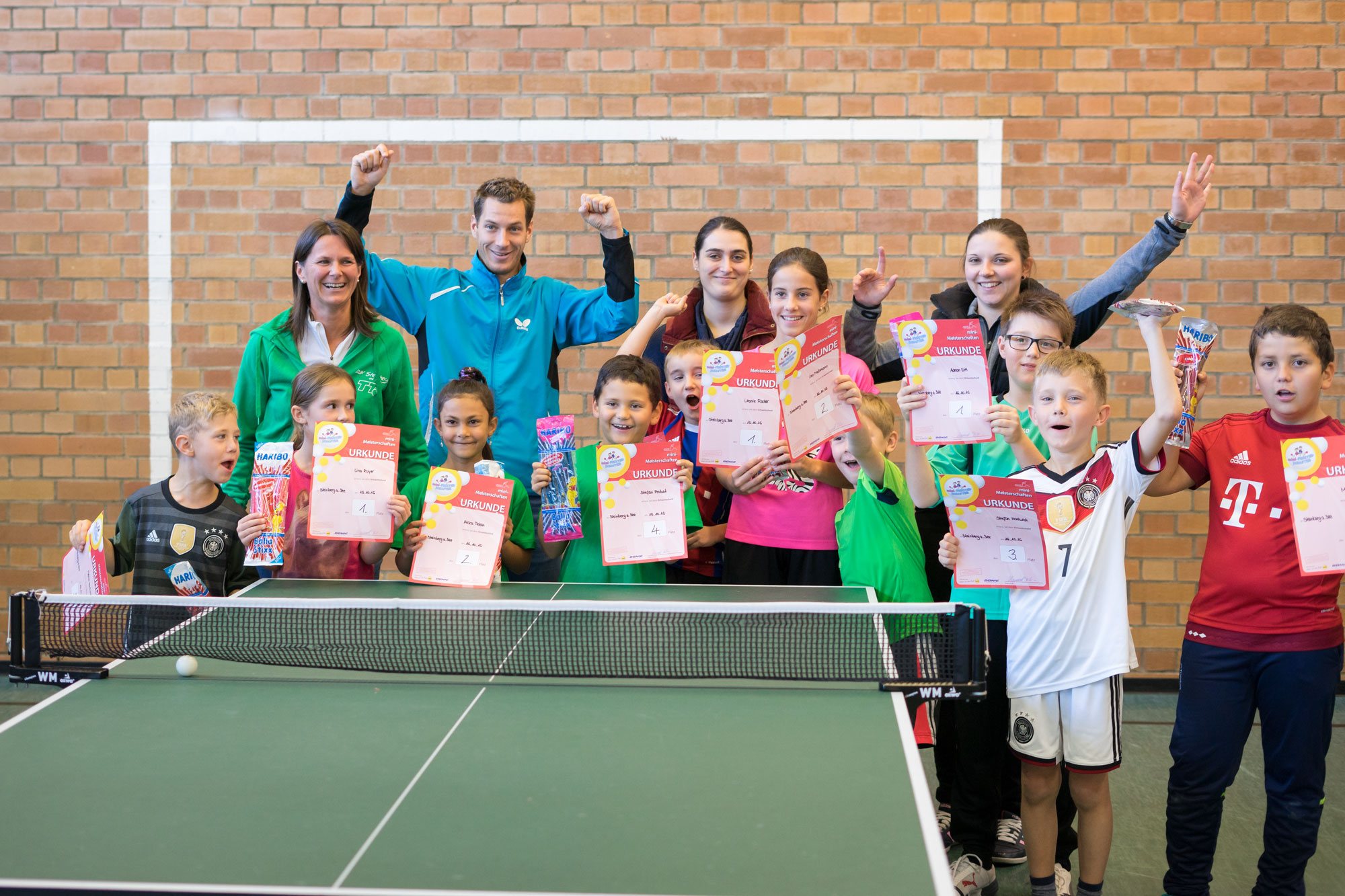 Die „minis“ zeigten beim Ortsentscheid in drei Altersklassen unter den Augen ihrer Eltern sehenswerte Ballwechsel und hatten großen Spaß an der grünen Platte.